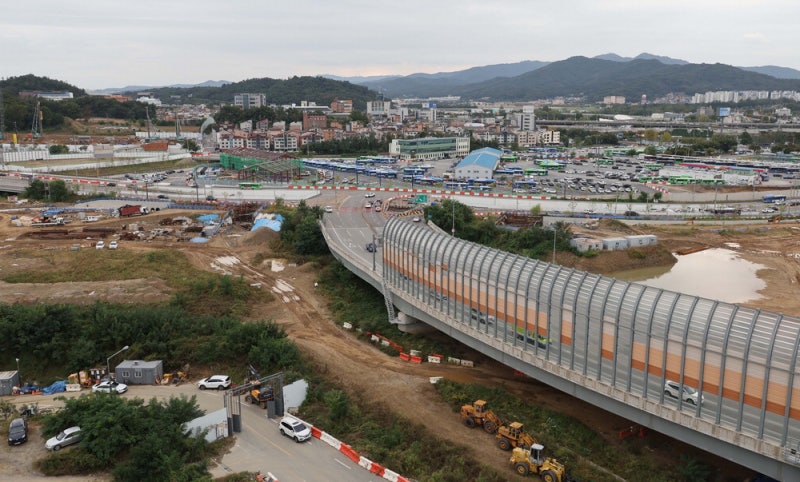 • 현대건설 복정역세권 개발100만㎡ 복합단지 연내 착공강남 옆세권 입지도 장점 꼽혀군사시설 보호구역 완화로건축 높이 45m→최대 154m'복정역 에피트' 분양도 주목 복정역세권 개발사업 현장의 모습. 한주형 기자"탄천을 건너면 바로 서울 강남이랑 송파라 입지는 참 좋…