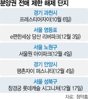- 내달 6일 과천 프레스티어자이 이어12월엔 서울서 전매제한 대거 해제6·27 대출규제 여파로 곳곳서 처분"현금 동원력 있다면 내집마련 기회"