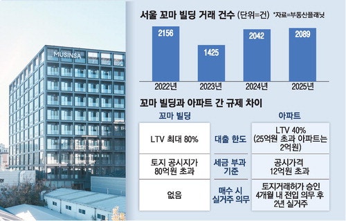 - 서울 거래 2년연속 회복세대출문턱 높아지고 稅부담 커져수도권 아파트투자 갈수록 ‘주춤’꼬마빌딩 거래 작년 2089건 기록임대사업자 활용땐 대출 최대 80%공시지가 80억 넘어야 종부세 대상
