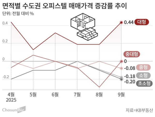 - 수도권 대형 오피스텔 전월比 0.44% 상승대형 면적만 12개월 연속 상승전문가들 “규제 피했지만 한계…가격 상승 여력 약해” 서울 아파트 가격이 급등하면서 주거용으로 대체할 수 있는 서울 대형 오피스텔의 가격도 상승세를 타고 있다.11일 KB부동산에 따르…