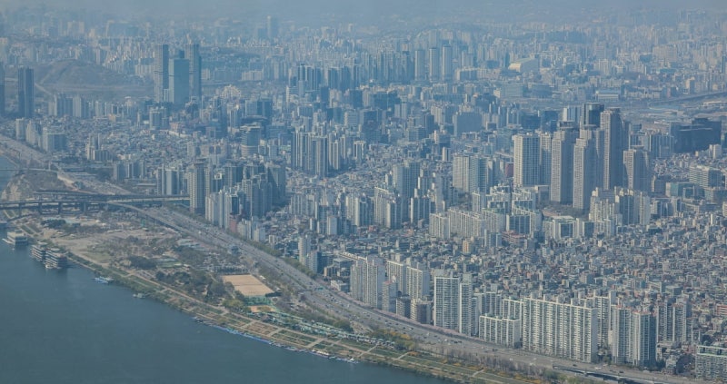 지난 8일 서울 송파구 롯데월드타워에서 바라본 아파트 단지 모습./ 사진=임형택 한국경제신문 기자"'이 가격에 구축을 …
