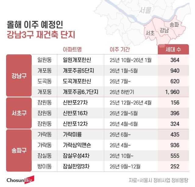 강남 3구 전셋값 더 오르나…올해 재건축 단지 7000가구 이주·철거한다