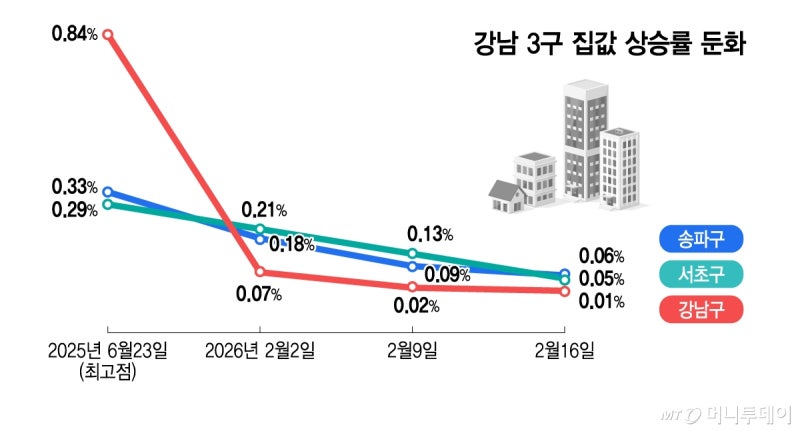 강남 3구 집값 상승률 둔화/그래픽=김지영정부의 다주택자 압박이 본격화되면서 서울 집값의 상승 탄력이 눈에 띄게 둔화되고 있다. 무엇보다 서울 집값 흐름의 바로미터로 불리는 강남권이 먼저 반응하는 모습이다. 일각에서는 강남권을 중심으로 서울 집값이 하락세로 돌아설 …
