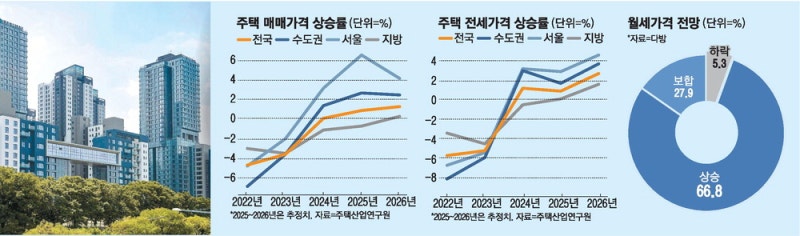- ‘2026년 주택시장 전망과 정책방향’주택산업연구원, 23일 간담회 개최“공급 부족… 전세도 4% 넘게 오를 것”