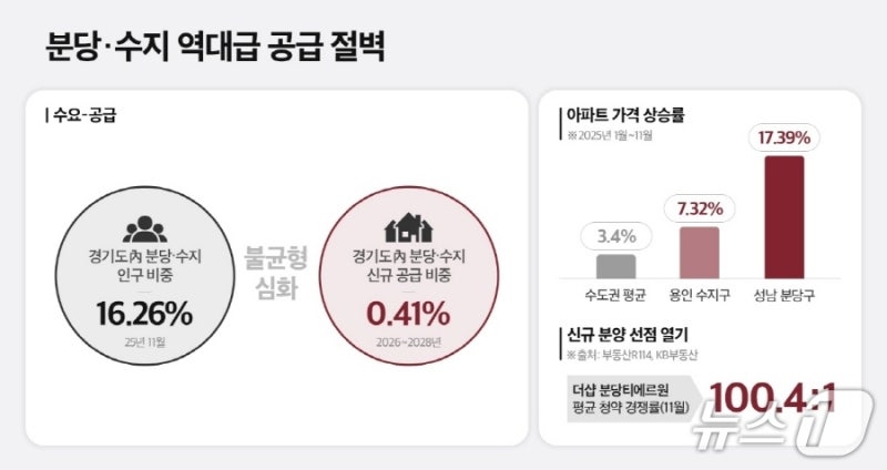 뚫리는 신고가, 막힌 공급… 분당·수지 집값 밀어올리는 ‘수급 불균형’
