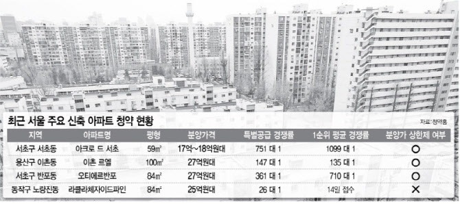 - 분양가 상한제 적용되더라도 분양가 20억~30억 오티에르반포 1순위 청약 경쟁률 710.2대 1노량진 국평 첫 25억 돌파, 특공 청약 26.4대 1분양가, 지금이 제일 싸다 판단에 '수요' 늘어[이데일리 최정희 기자] 서울 신축 아파트가 20억~30억원의 초고가에 분…