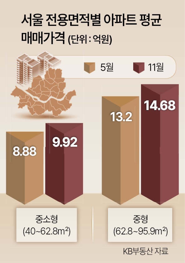 - 3차례 대책 후 중소형 11%대 급등15억·25억으로 쪼갠 ‘대출 절벽’에중저가 아파트 15억원 ‘키 맞추기’전문가 “대출규제 정책이 시장왜곡”