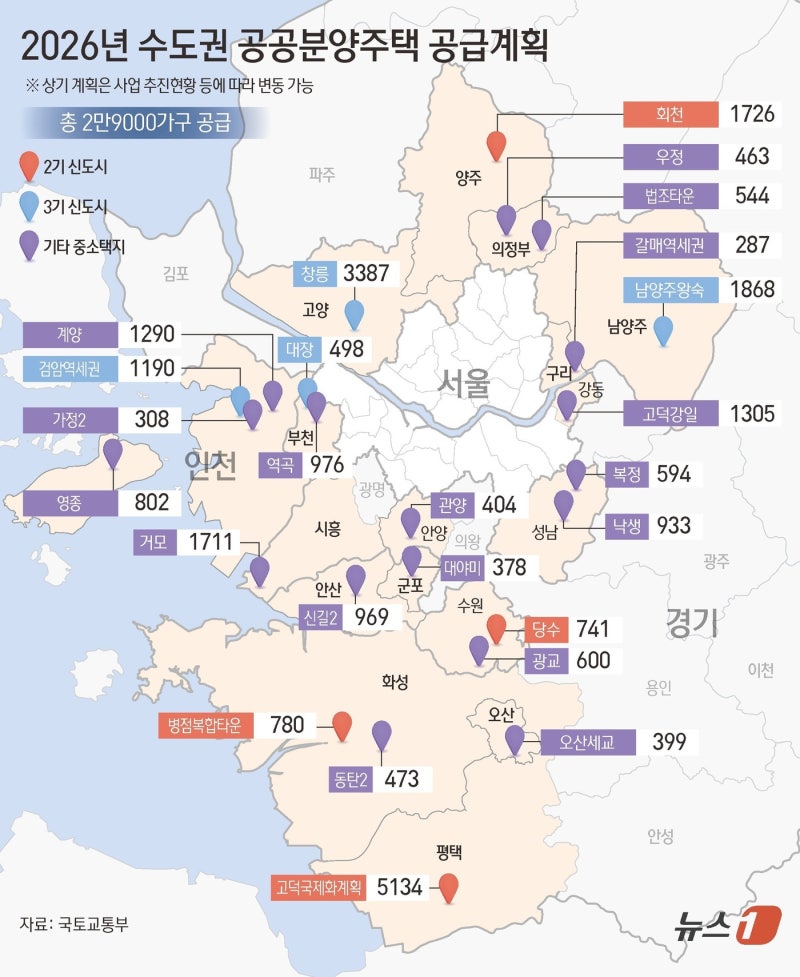 - 내년 수도권 2만 9000가구 공공분양, 판교급 신도시 한 곳 규모남양주왕숙·파주운정3·수원당수, 유보지 전환으로 공급 확대