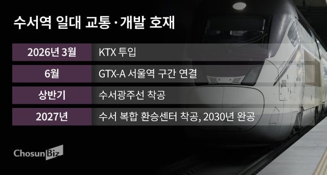 - 3월 KTX 투입, 6월 GTX-A 연결수서광주선, 복합 터미널 연내 착공수서역 일대 대규모 역세권 프로젝트수서·일원·문정 집값 고공행진