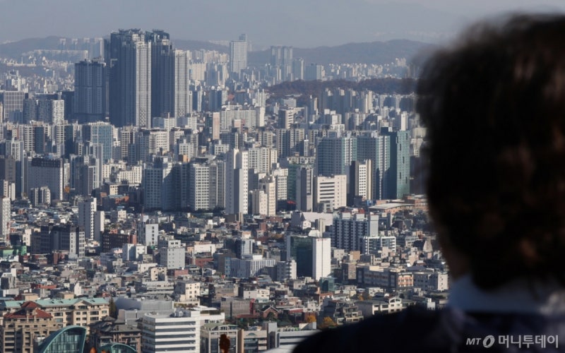 (서울=뉴스1) 장수영 기자 = 14일 서울 중구 남산에서 바라본 도심에 아파트 단지가 보이고 있다. 서울 아파트 거래량이 지난달 대비 10분의 1 수준으로 급감한 것으로 나타났다. 이는 토지거래허가구역 지정과 정부의 10·15 부동산 대책으로 인해 매매심리…
